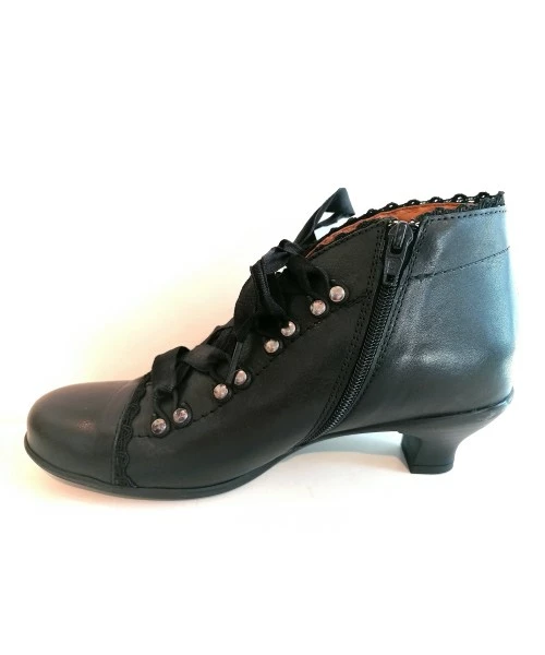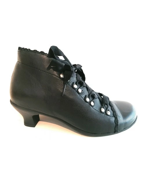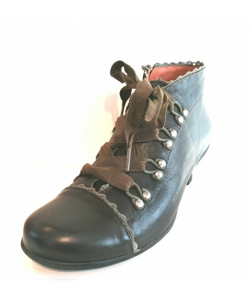 Bottine fabriquée par la marque espagnole Brako. Forme anatomique, large aux orteils. Semelle intérieure amovible amovible. Cuir tannage sans Chrome , matériaux sans allergènes . Hauteur du talon: 4.5 cm.