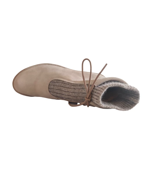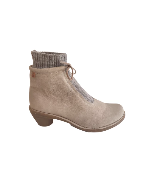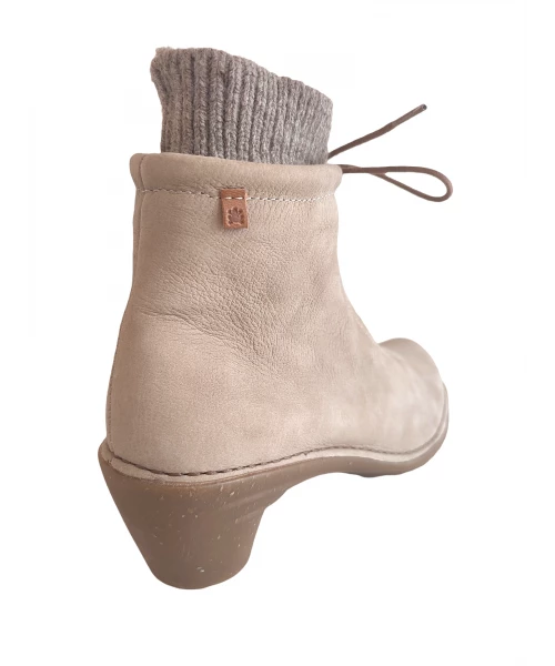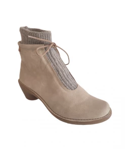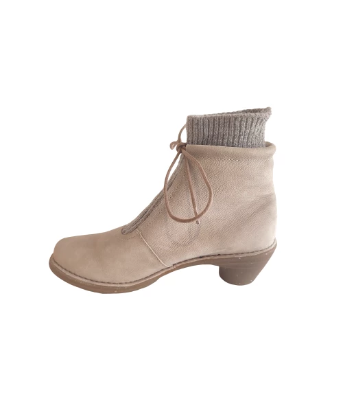 Ce modèle combine un cuir souple qui s’adapte parfaitement au pied et un empiècement de laine dans un coloris piedra très facile à assortir avec n’importe qu’elle tenue. Un petit lacet se lie sur la cheville en toute féminité