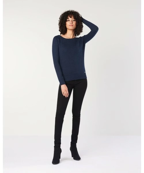 Pull ajusté en chanvre tricoté, avec détails côtelés et étiquette logo en métal.New