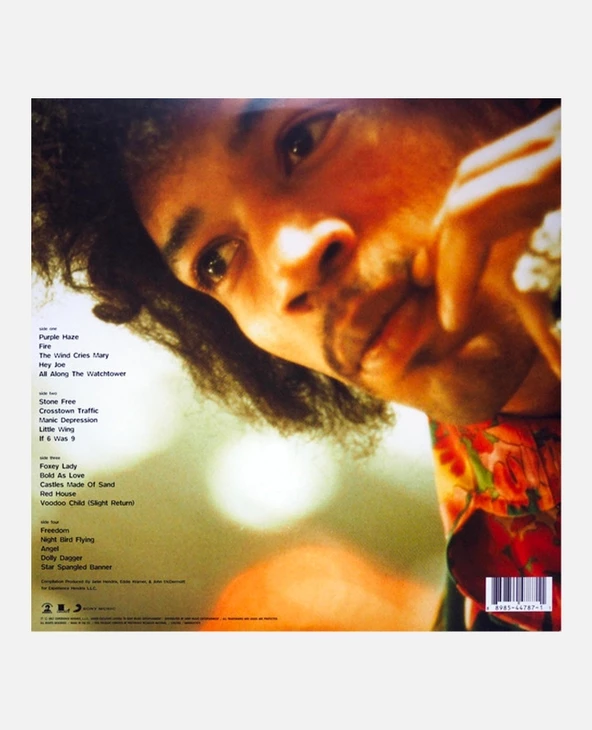 Double Album Vinyle LP 12″ | Sortie : 1997 | Durée d’écoute : 1h13min. | Label : Sony | Titres : Purple Haze, Fire, The Wind Cries Mary, Hey Joe, All Along the Watchtower, Stone Free, Crosstown Traffic, Manic Depression, Little Wing, If 6 Was 9…