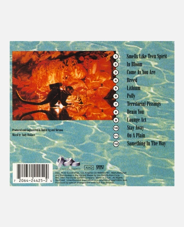 Sortie : 1991 | Durée d’écoute : 49 min. | Label : Geffen | Titres : Smells Like Teen Spirit, In Bloom, Come As You Are, Breed, Lithium, Polly, Territorial Pissings, Drain You, Lounge Act, Stay Away, On A Plain, Something in the Way, Endless Nameless
