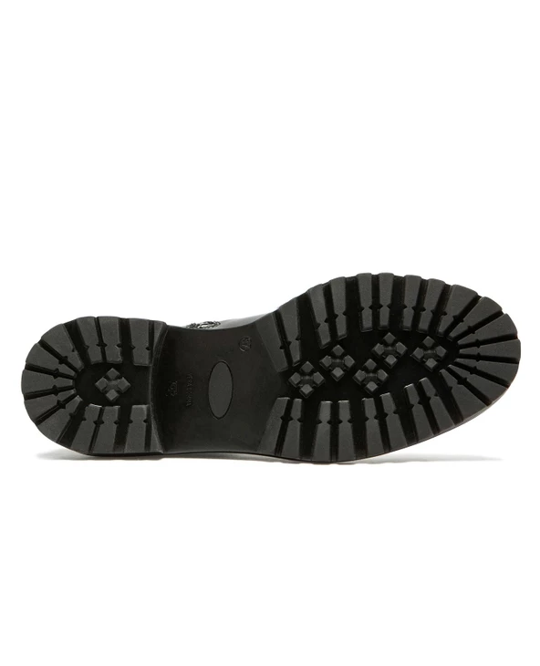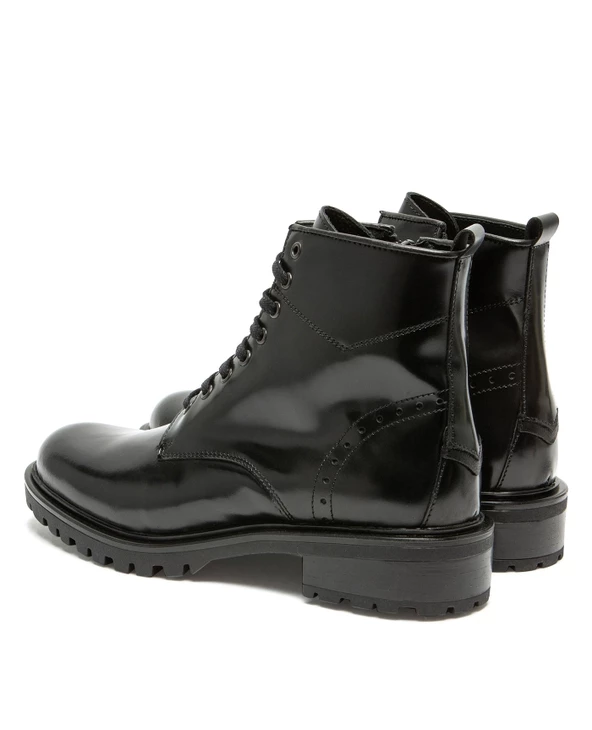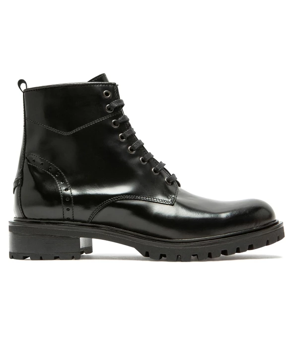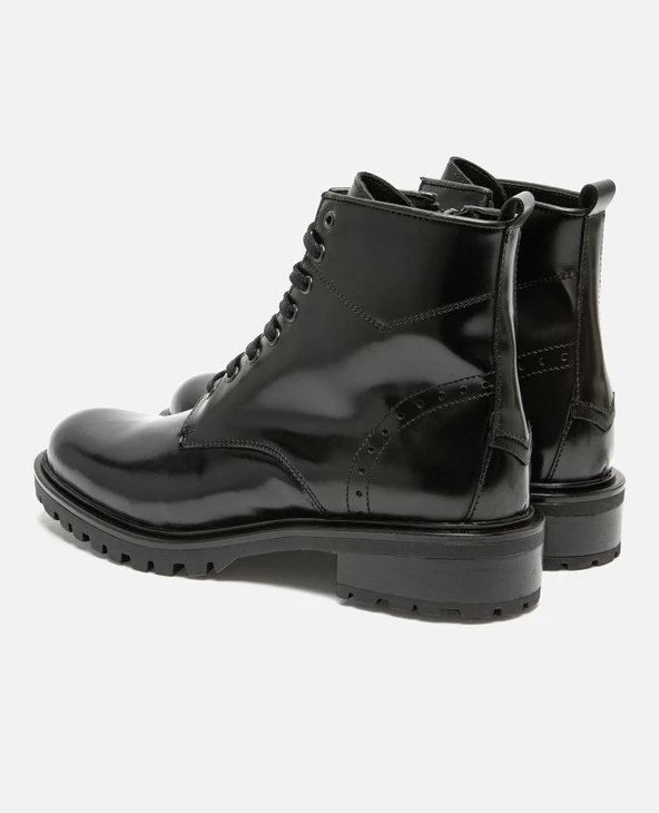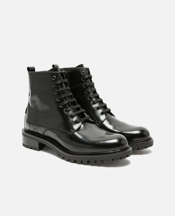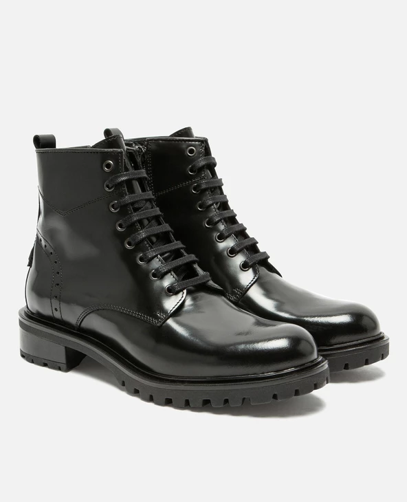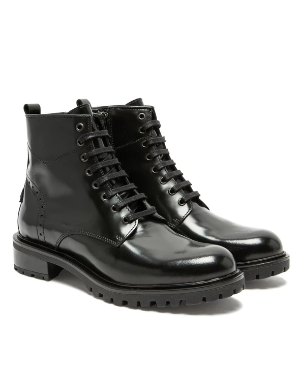 JODIE est une bottine à lacets en cuir vernis revisitée dans une version rock et moderne. Sa semelle crantée est incontestablement son atout mode, elle allonge la silhouette. Fabriquée au Portugal.