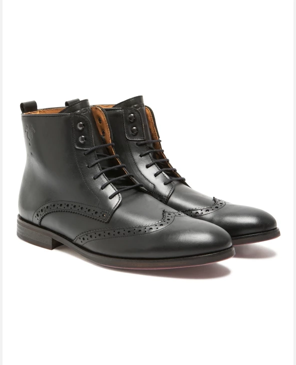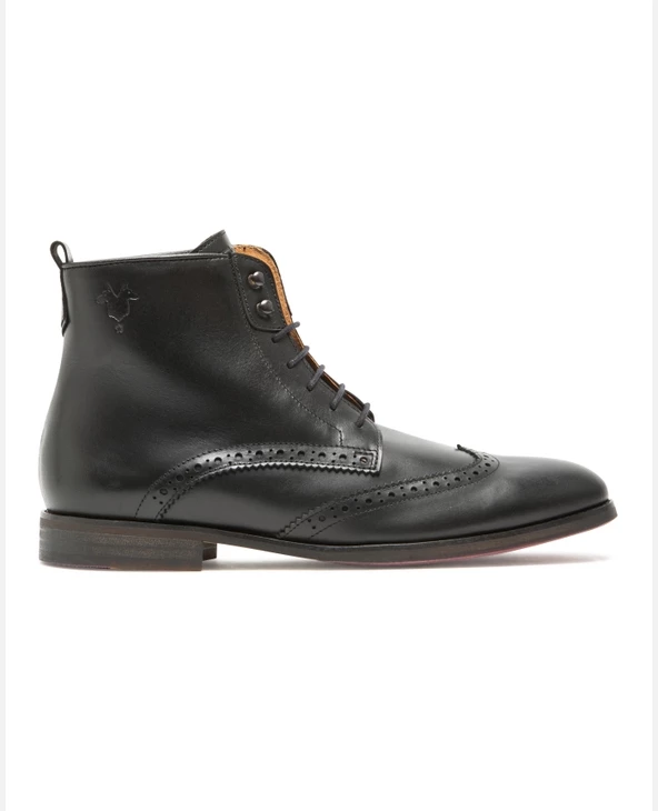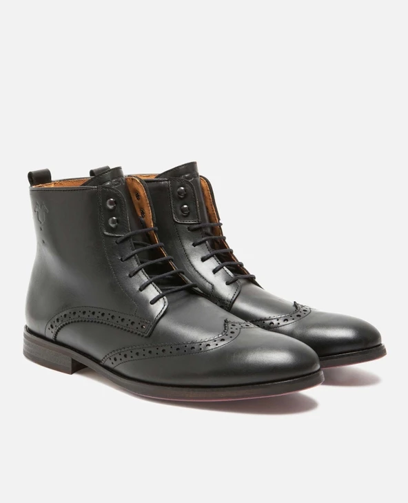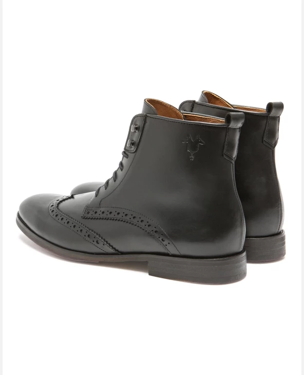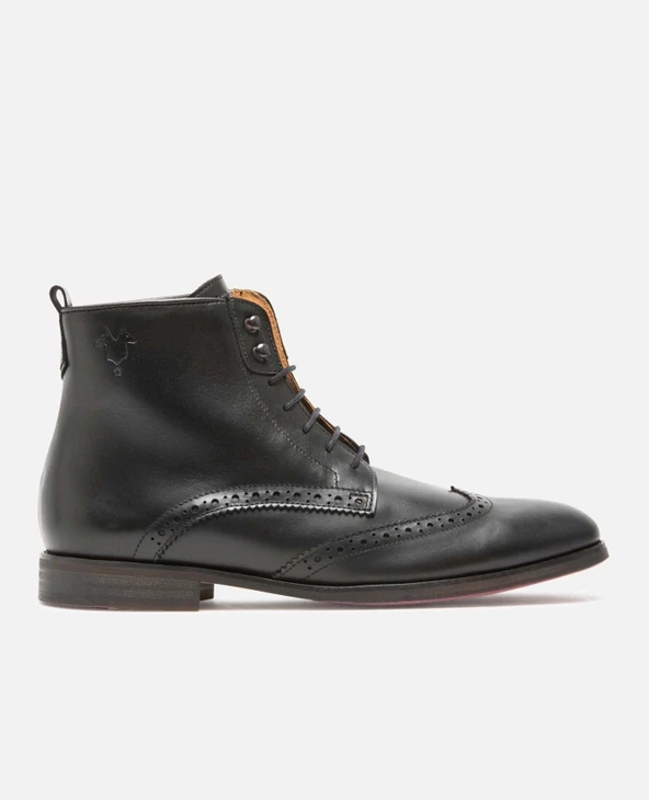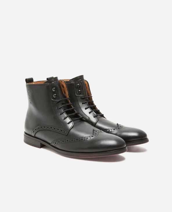 Ces bottines à lacets noires sont réalisées en cuir tannage végétal. Elles sont fabriquées en France et sont dotées d’une semelle intérieure en cuir et d’une tige en cuir lisse. Elles se prêtent tout particulièrement aux tenues formelles.