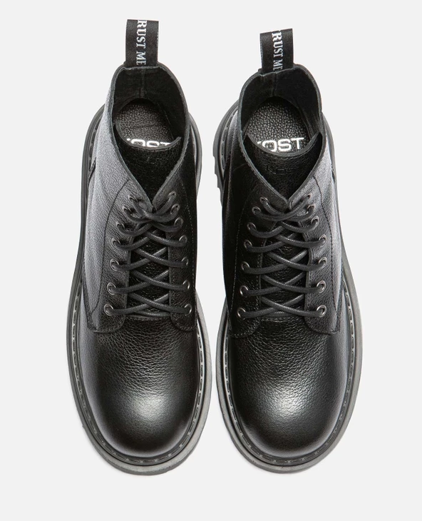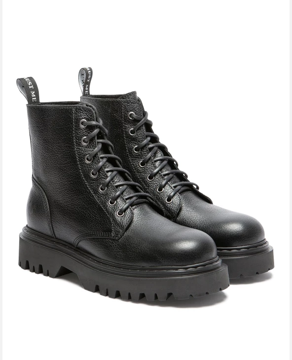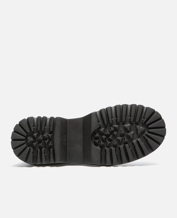 Ces chunky boots sont la grande tendance de cet hiver ! Leur semelle crantée est composée à 20% de matériaux recyclés. Sur le galon (étiquette à l’arrière de la cheville) est inscrit « Don’t Trust Me ».