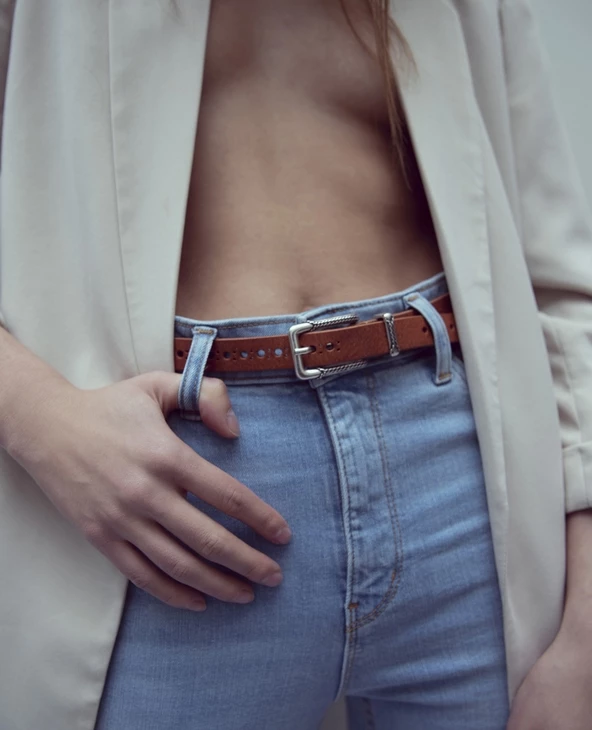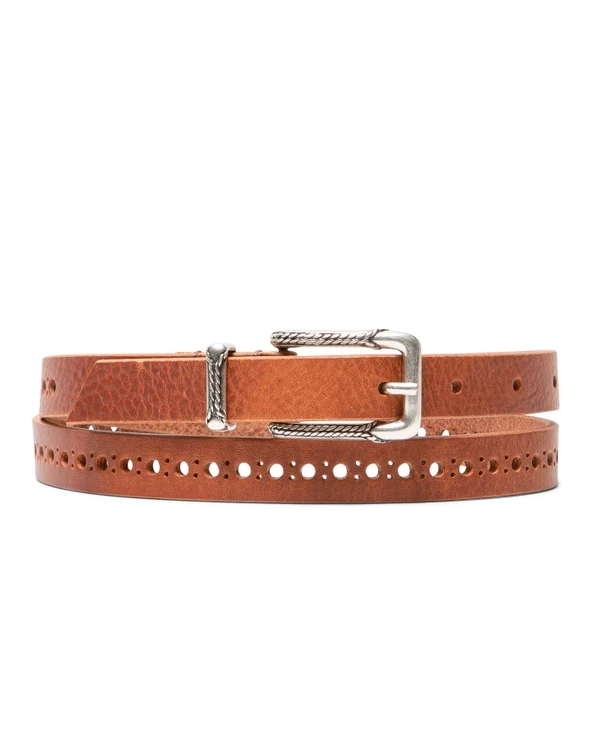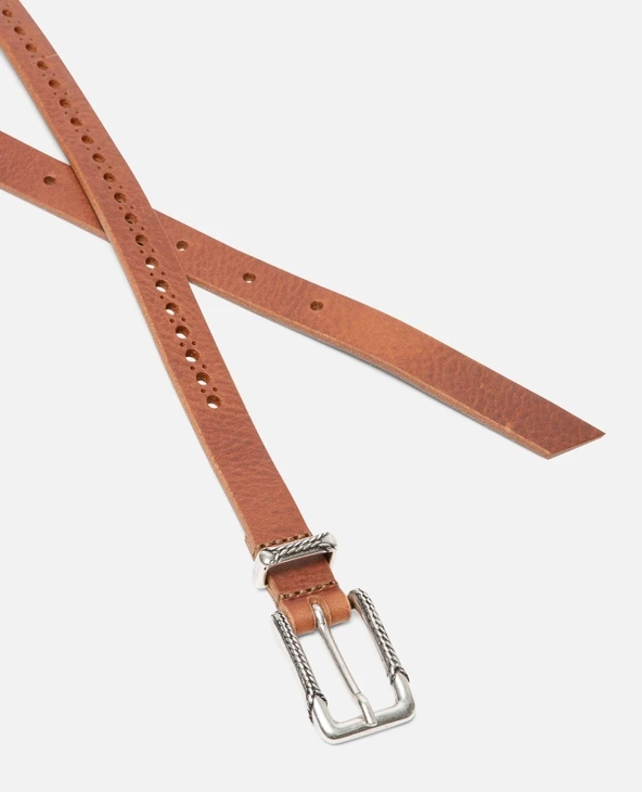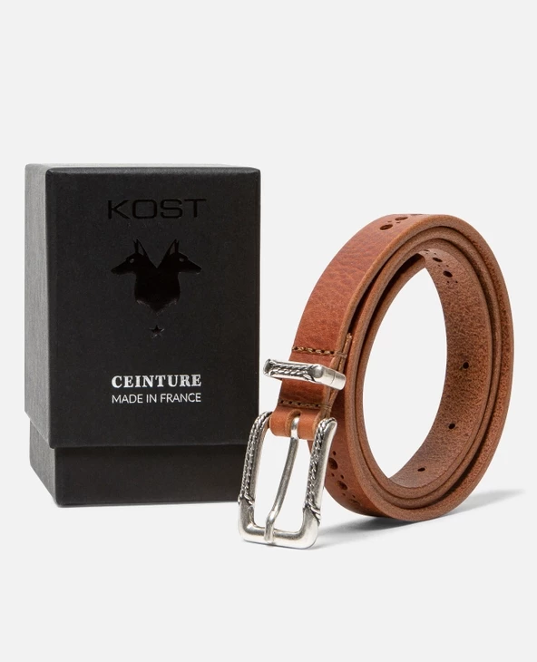 Ceinture 5 trous en cuir noisette fabriquée en France. Boucle en métal sourcée en Italie. Largeur : 19 mm Epaisseur : 3-4 mm