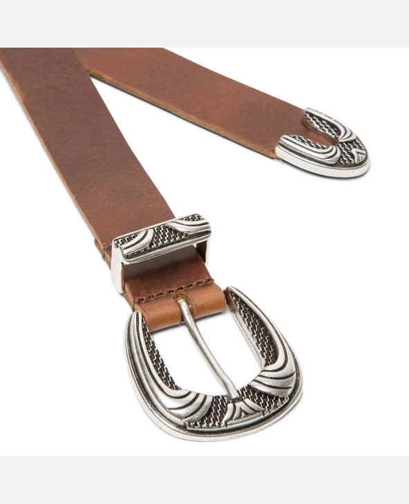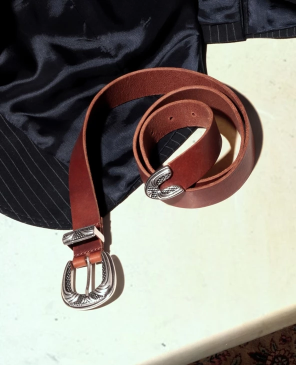 Ceinture 5 trous en cuir noisette pour homme et femme fabriquée en France. Boucle en métal sourcée en Italie. Matière principale : Cuir de vachette. Largeur : 29 mm – Epaisseur : 3-4 mm