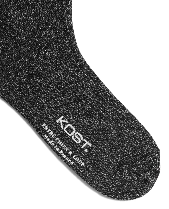 Chaussettes fabriquées en France en jersey coton et lurex, bord feston. Composition : 42% Polyamide – 37% coton – 18% Polyester métallisé – 3% Elasthane. Taille unique (36-40)