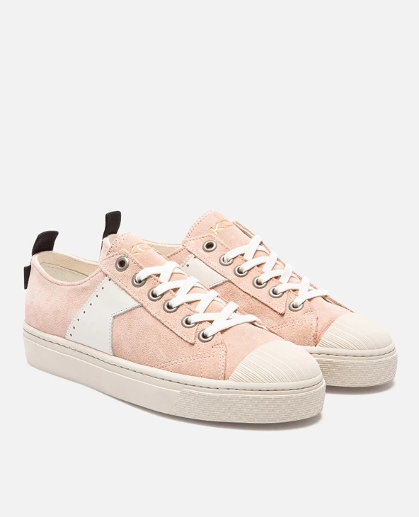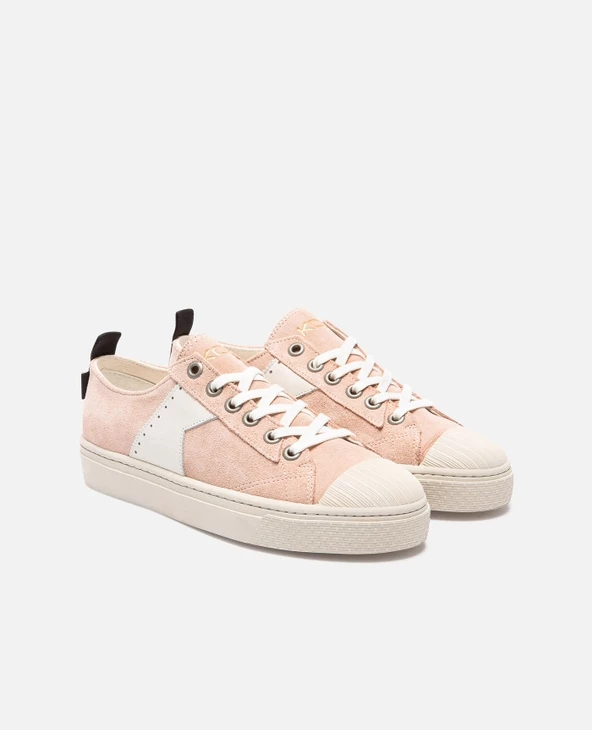 Découvrez notre basket éco-responsable pour femme produit au Portugal à partir de matériaux durables : semelle en caoutchouc recyclé (20%), lacets en coton biologique, empiècement en cuir tannage végétal.
