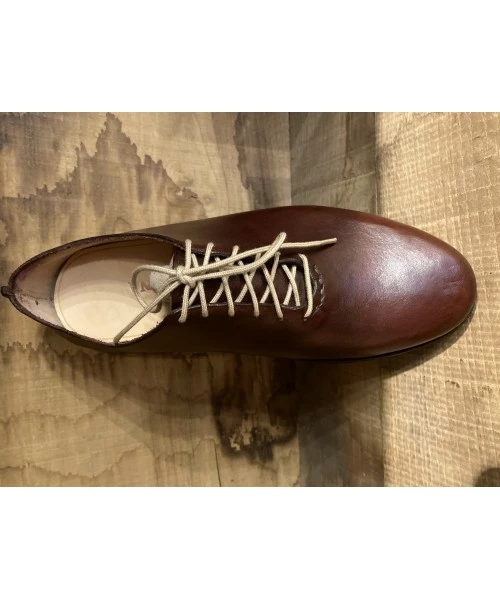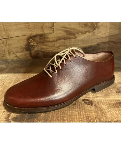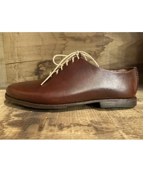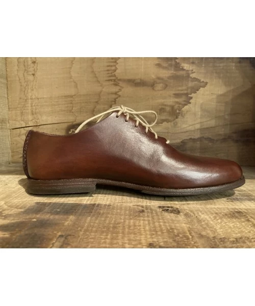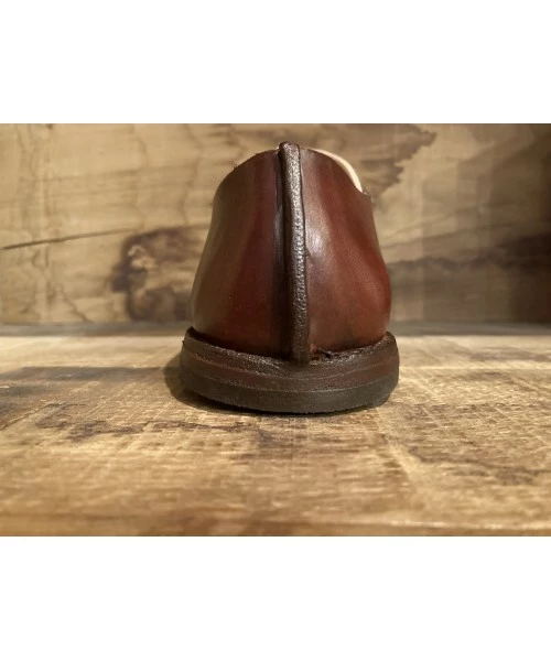 Modèle “cycliste” créé et fabriqué par Patrick Daniel. Cuir de sellerie au tannage végétal. Coutures main, montage main sans intervention de machine. Nécessite 11 heures de travail. Semelle de montage clouée et rivée protégée par un patin. Chaussure ressemelable, faite pour durer. Semelle intérieure amovible. D’autres coloris à venir. Fabrication sur commande, délai deux semaines.