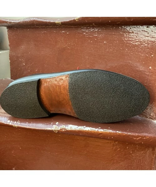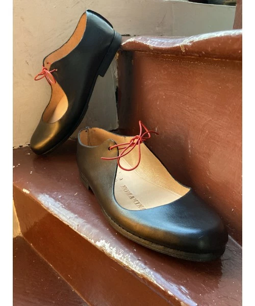 Modèle crée et fabriqué par patrick Daniel. Cuir de sellerie au tannage végétal, coutures main, montage main, aucune intervention de machine. Nécessite 11 heures de travail. Semelle de montage clouée et rivée protégée par un patin. Chaussure ressemelable, faite pour durer. Semelle intérieure amovible. D’autres coloris à venir. Sur commande: délai 2 semaines.