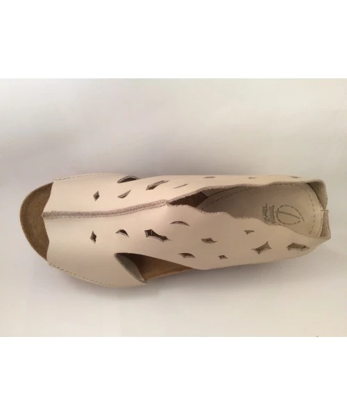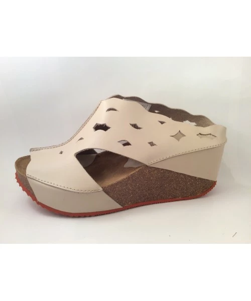 Mule compensée de Sergio Tomani, bloc semelle en latex et liège naturel flexible. Grand confort et souplesse de ce modèle estival.